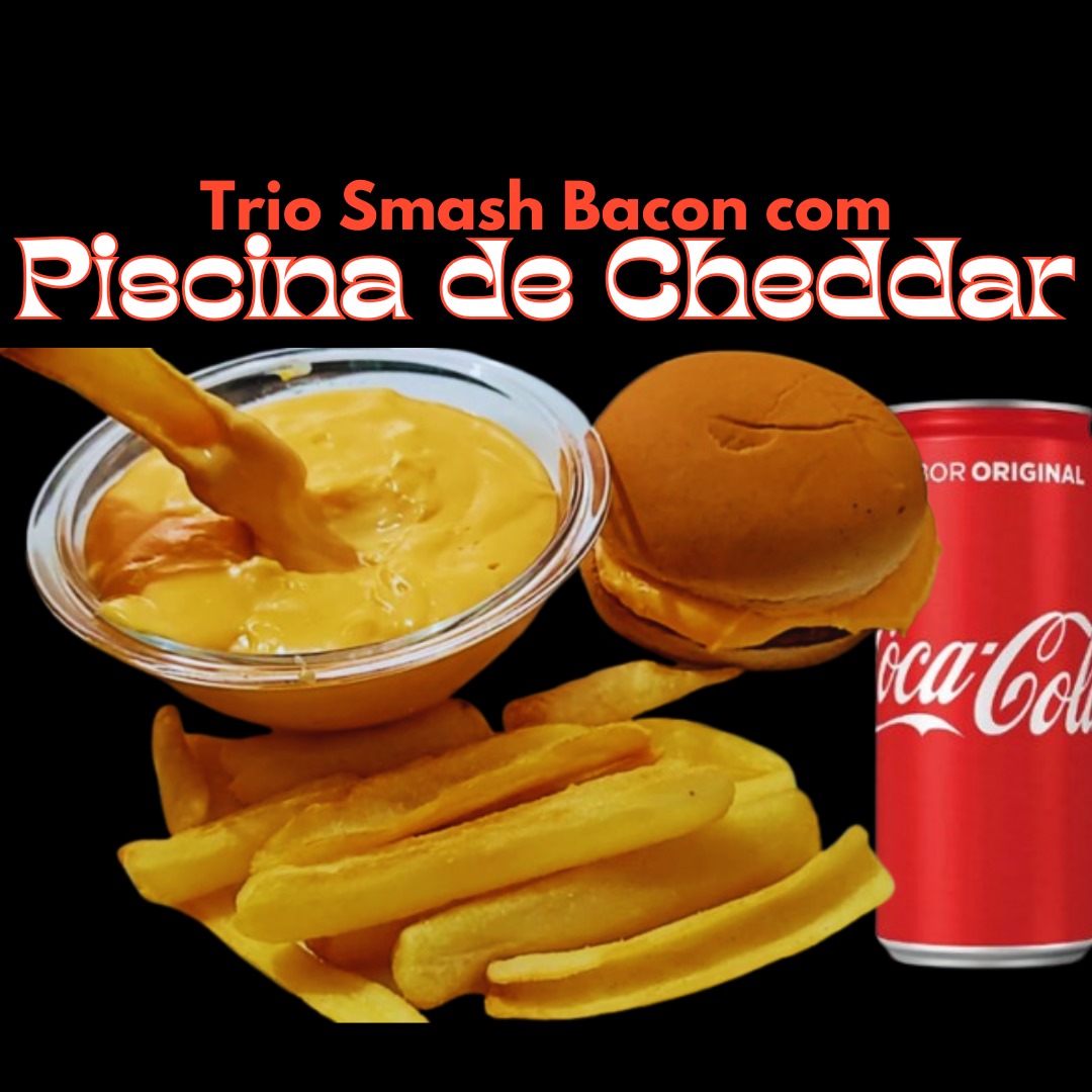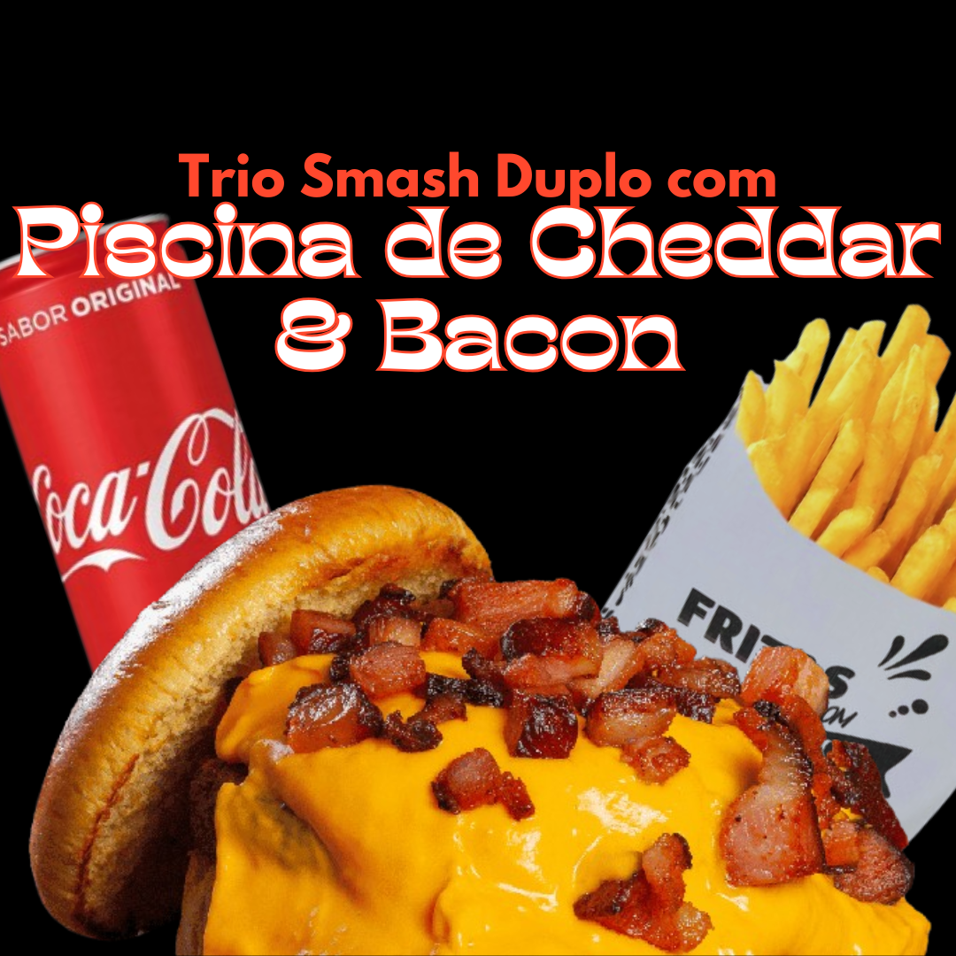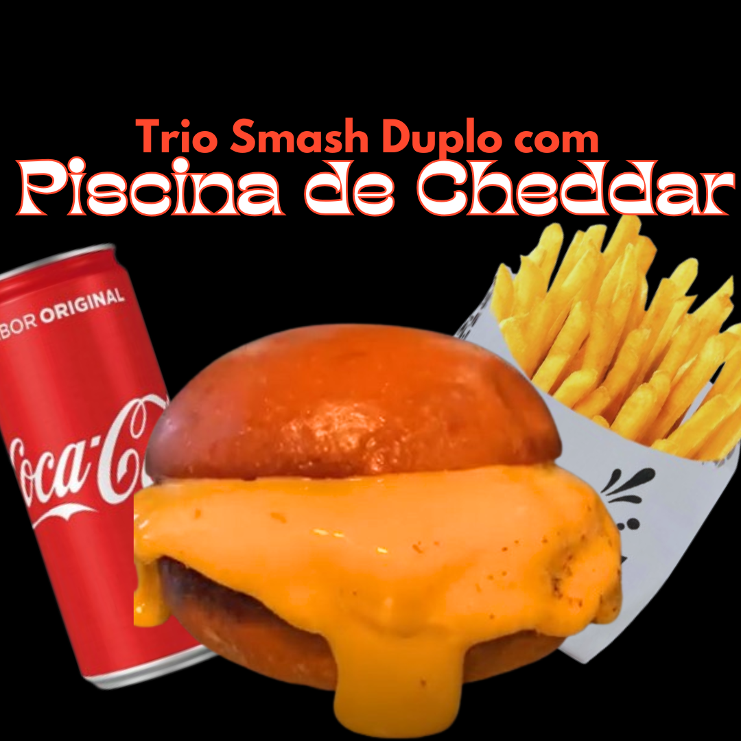 Trio Smash Duplo Cheddar + Fritas + Bebida + Piscina de Cheddar - PROMOÇÃO