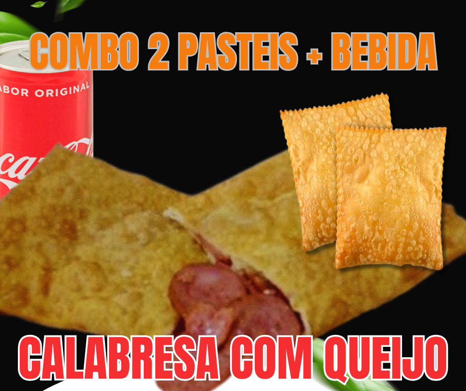 Combo 2 Pasteis de Calabresa Queijo + 1 Bebida