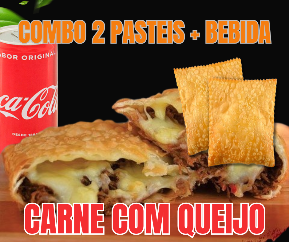 Combo 2 Pasteis de Carne com Queijo + 1 Bebida