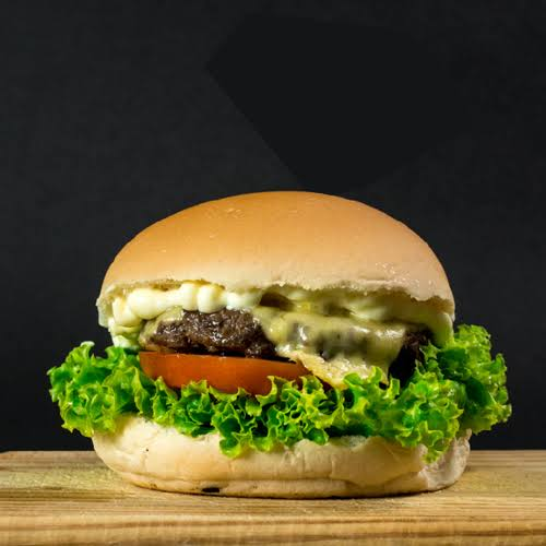1 hambúrguer de contra filé bovino (aprox. 100g - in natura, fresco e moldado a mão na hora do pedido), muçarela e maionese de churrasco da casa. Acompanha fritas e bebida. ARRASTE PRA CIMA PARA ESCOLHER SUA BEBIDA E MOLHOS.