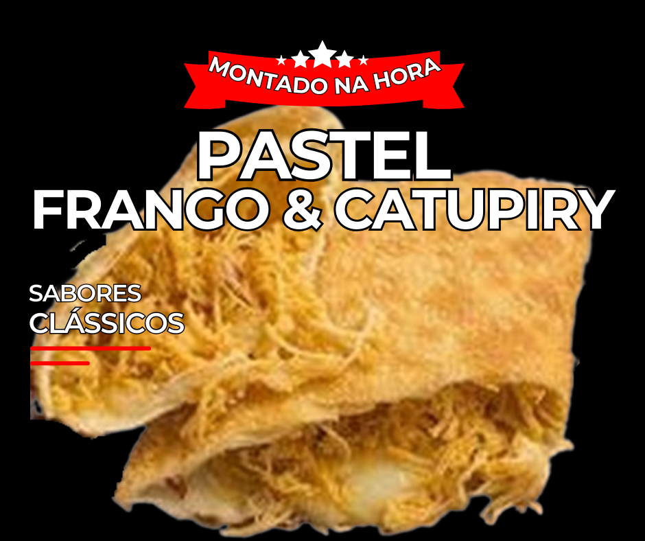 Pastel de 20cm super recheados com frango do Pub e catupiry. ARRASTE PRA CIMA PARA ESCOLHER SUA BEBIDA E MOLHOS