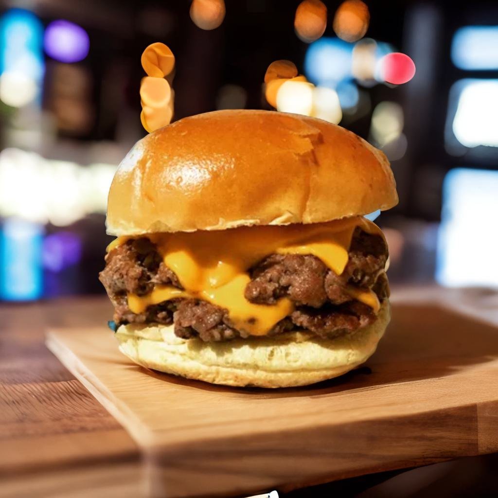 Delicie-se com nosso Smash Burguer Duplo Contra Filé & Queijo, um prato estrela da categoria 'Burguer & Smash do Pub Novo'. Uma dupla tentação de hambúrgueres de contra filé bovino, com aproximadamente 100g cada, preparados in natura e moldados a mão no exato momento do seu pedido, garantindo frescor e sabor incomparável. Acompanha uma generosa porção de muçarela derretida, dobrada para uma experiência extra saborosa, e nossa exclusiva maionese defumada da casa, que adiciona um toque final rústico e irresistível à combinação.